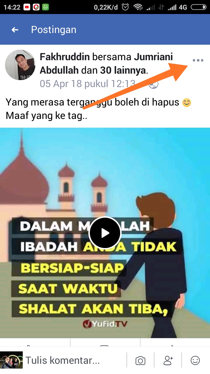 - Setelah itu,kalian akan masuk di postingan yang menandai anda , Kemudian kalian titik tiga 3 pojok atas, seperti gambar di bawah.